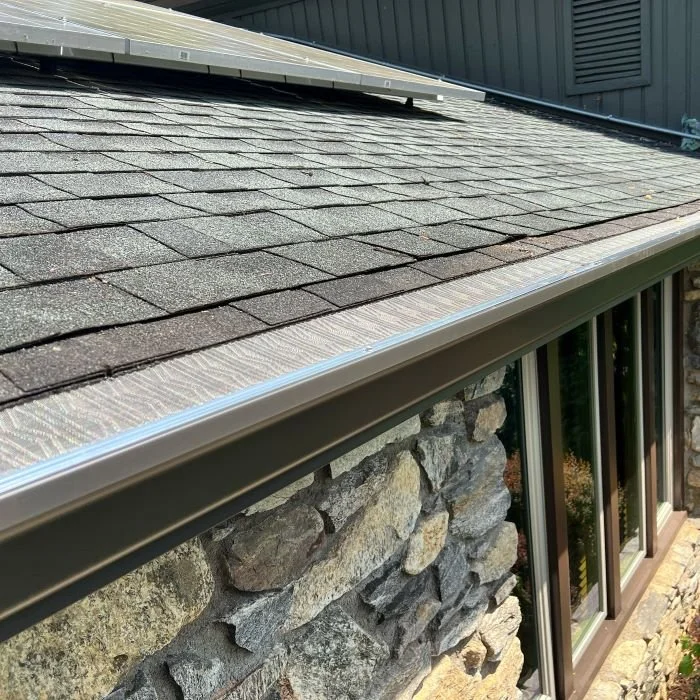 Gutter Covers: Solid covers, rollover covers, helmets, etc all attempt to sell you on “surface tension.” The water is supposed to follow that surface tension and roll into the slit below the cover, allowing water, but not debris to get into the gutter system. Unfortunately, rain doesn’t work that way in practice. With many parts of WNC being considered a “Temporate Rain Forest,” water will roll off the roof, over the covers, and straight over the side of your house.